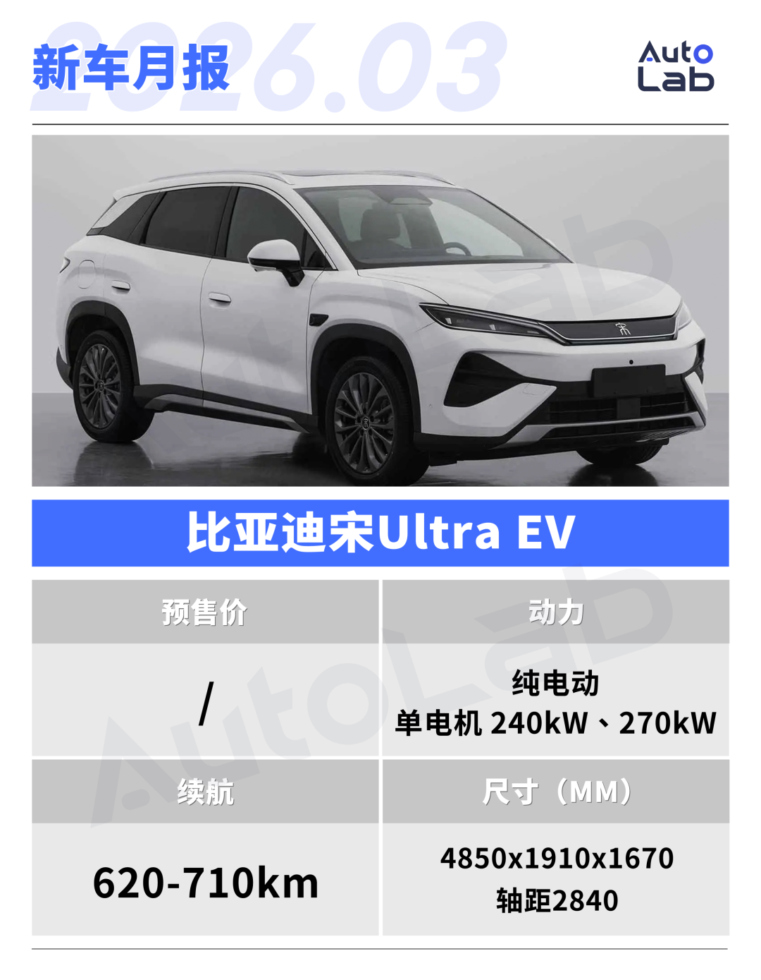 宋Ultra是王朝网首款纯电中型SUV,定位介于宋PLUS EV与唐EV之间,售价预计卡在18万元左右。