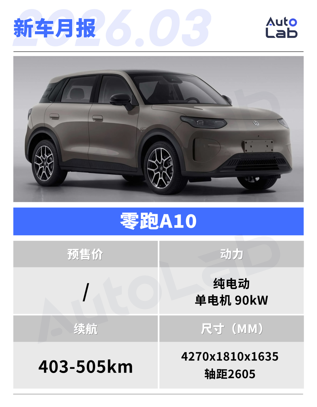 A10是零跑全新入门A系列的首款车型,主攻10万级小型纯电SUV市场,对标元UP等车型。