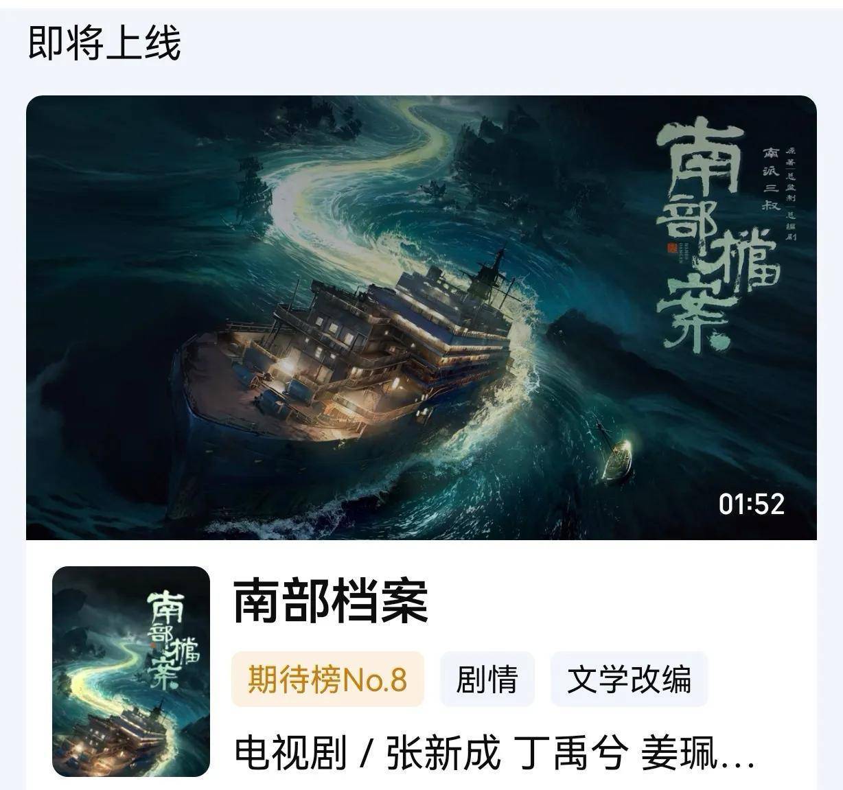 作为《盗墓笔记》的前传,《南部档案》未播先火,张新成将一人分别饰演张海楼与张海盐两角,故事围绕1906年“盘花海礁案”展开,这部作品将由南派三叔亲自担任总编,将原汁原味还原小说剧情!